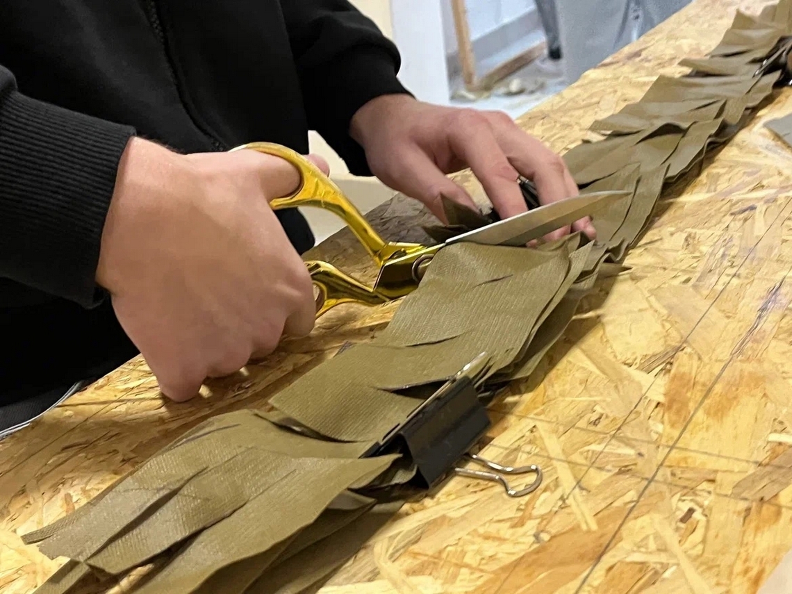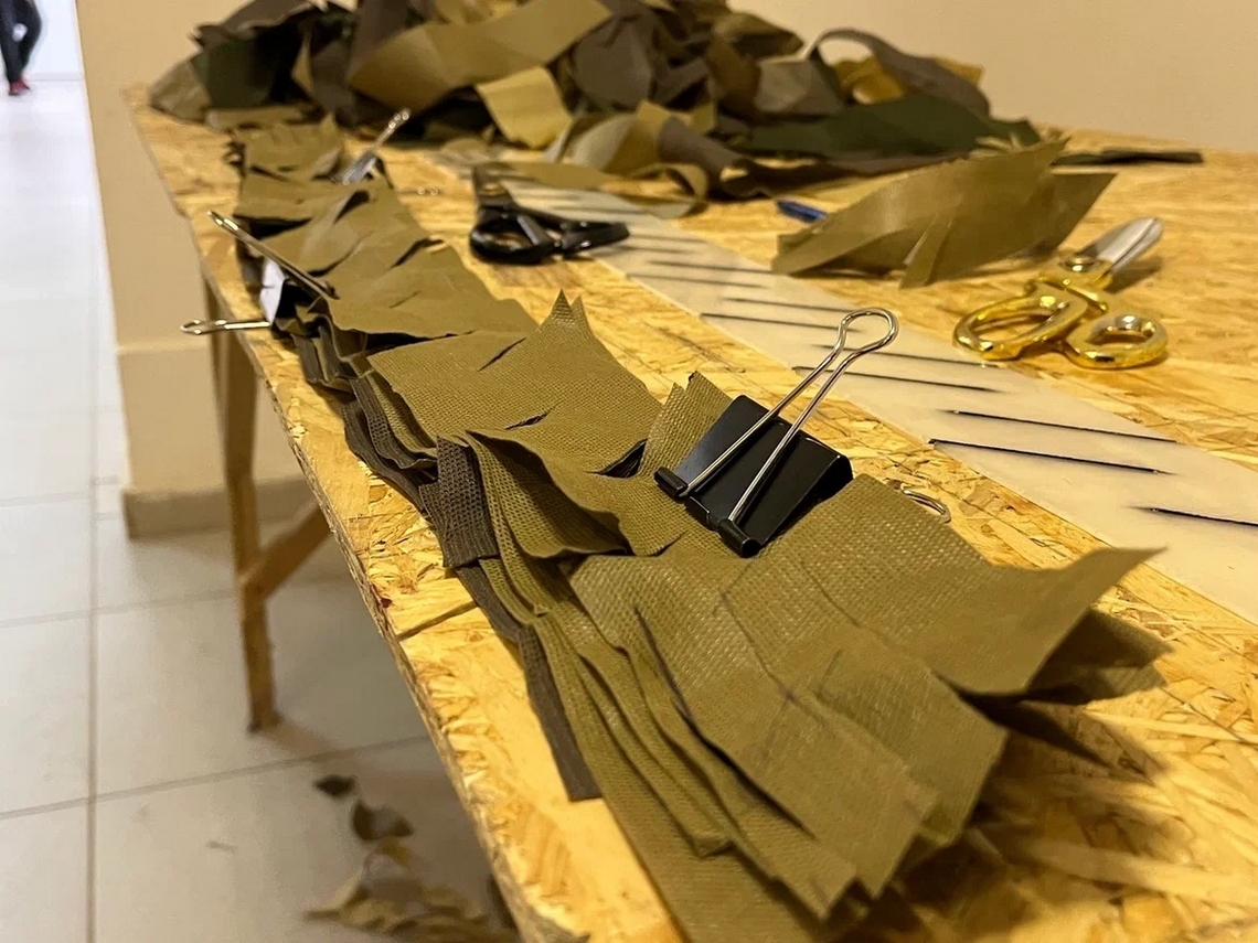 Кропотливая, но очень важная работа кипит в наших мастерских. Каждый узелок, каждая ячейка — это шаг к совершенной маскировке на полигоне.