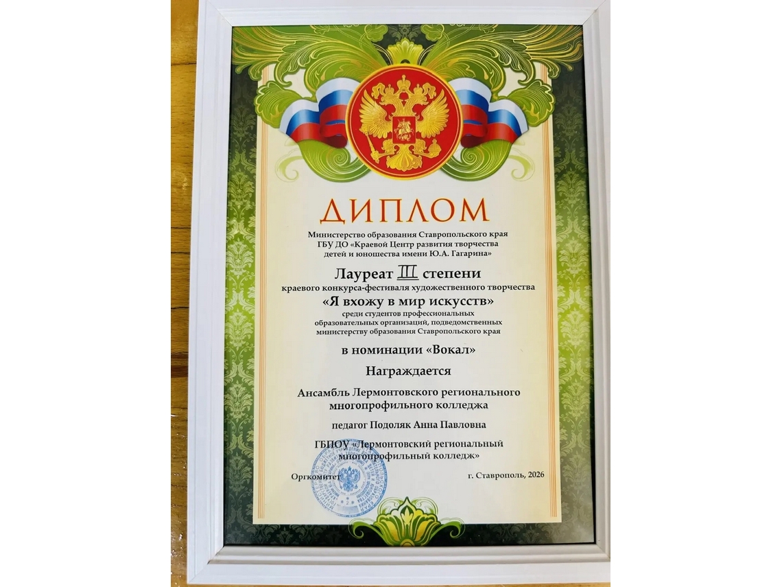 С огромной радостью сообщаем: наш вокальный ансамбль стал Лауреатом III степени в номинации «Вокал»!